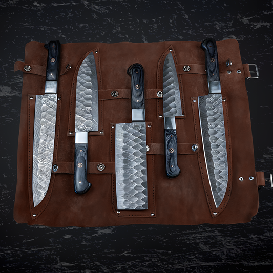 Hand-Forged Chef Damascus 5-Piece Knife Set