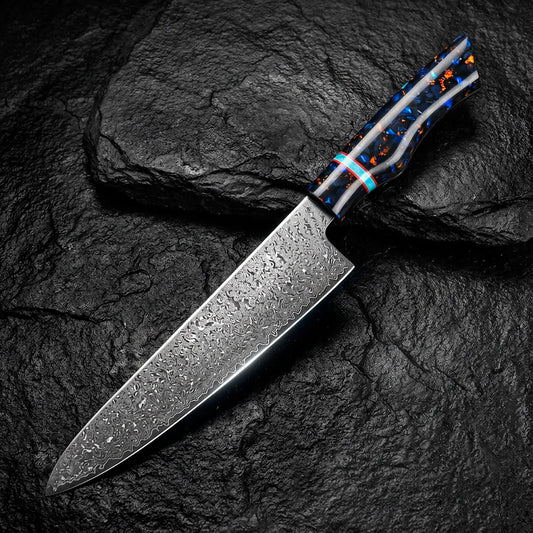 8-Piece Damascus Chef Knife Set VG10 with Black Speckled Resin Handles
