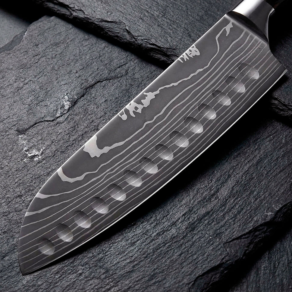 The ultimate all-purpose kitchen knife. Our Japanese Santoku features a granton edge that prevents food from sticking as you chop, while its precision-thin blade delivers the clean, effortless cuts that make cooking a joy.
